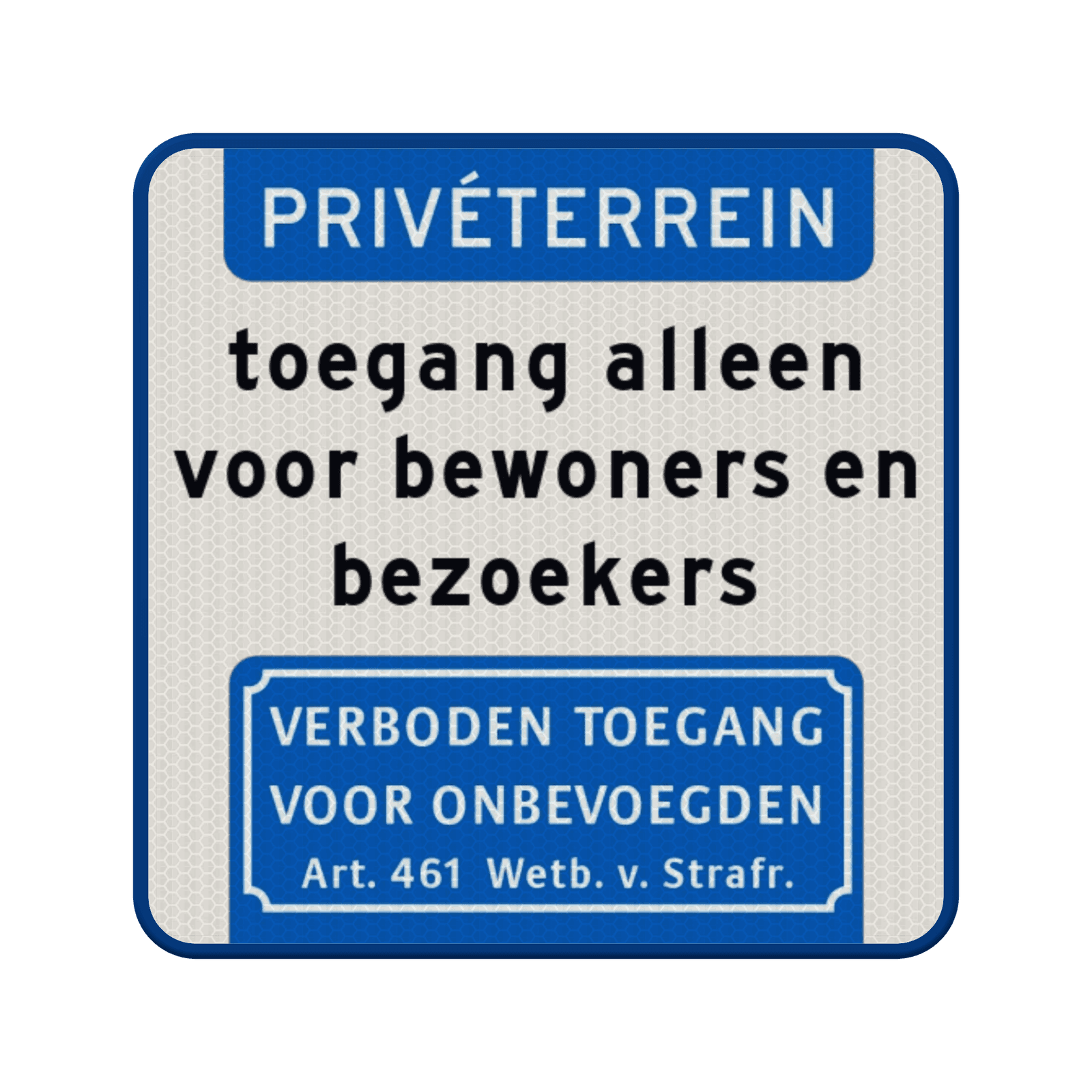 Verkeersbord privéterrein toegang alleen voor bewoners/bezoekers - reflecterend