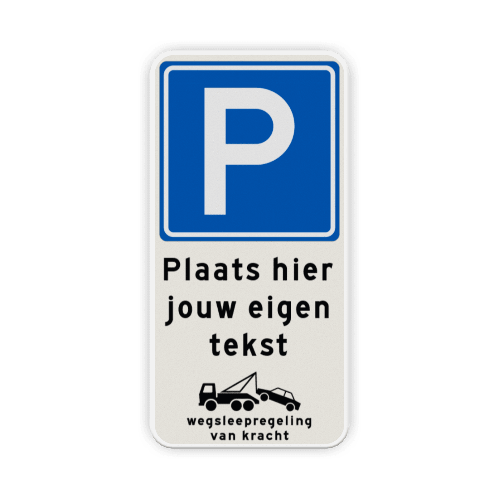 Parkeerbord met eigen tekst en wegsleepregeling - reflecterend