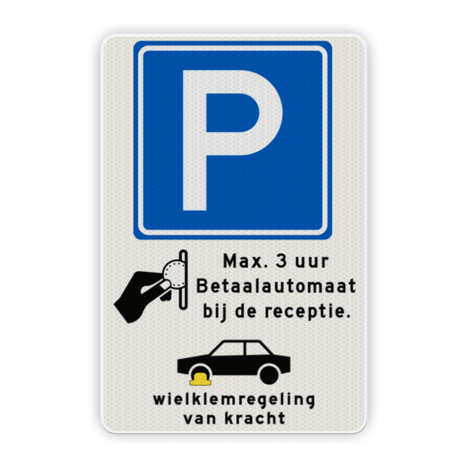 Parkeerbord RVV E04 + pictogram en eigen tekst