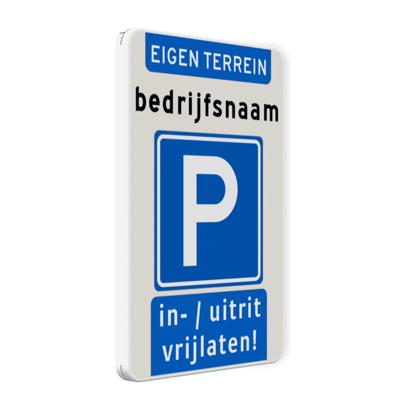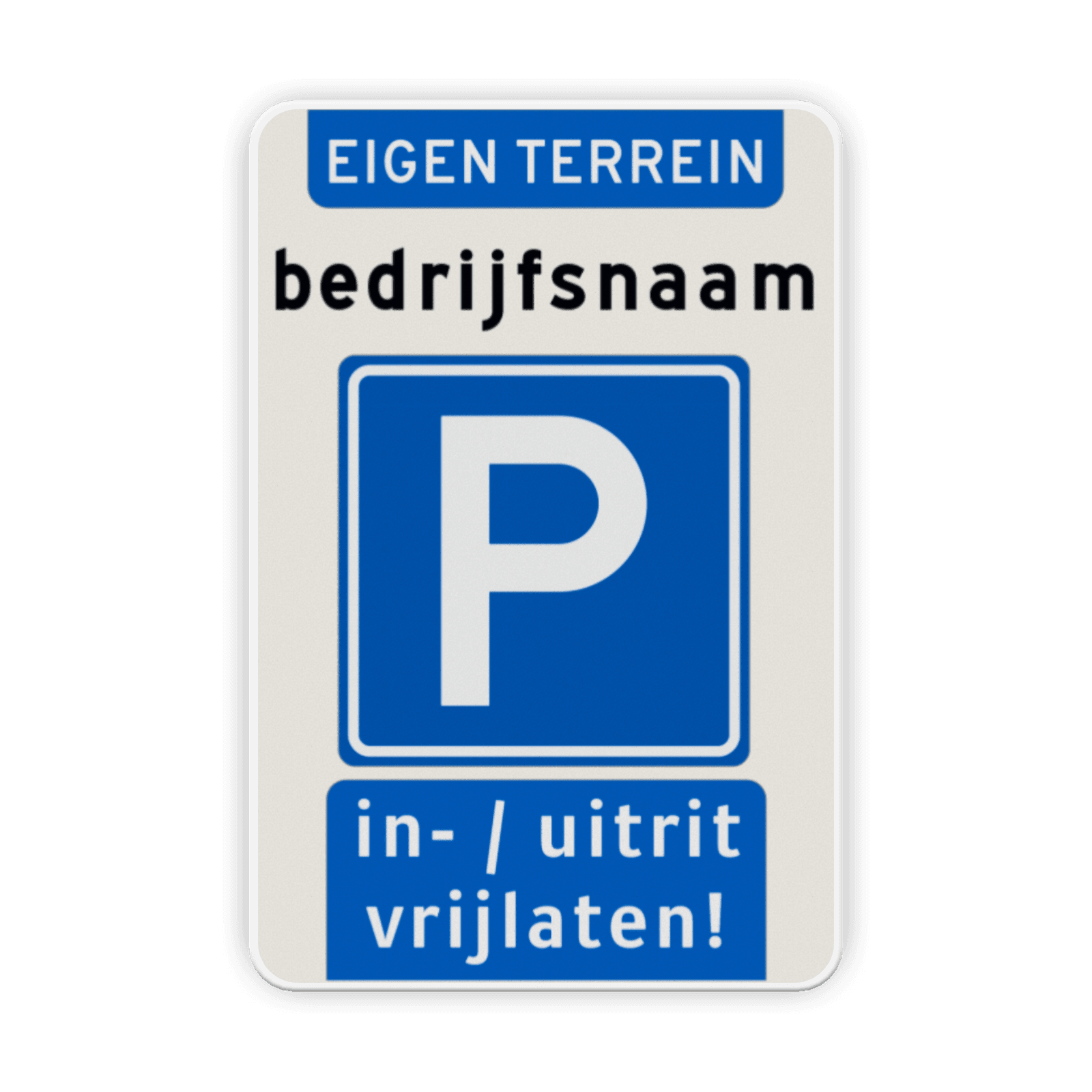 Verkeersbord parkeren eigen terrein (bedrijfs)naam - uitrit vrijlaten