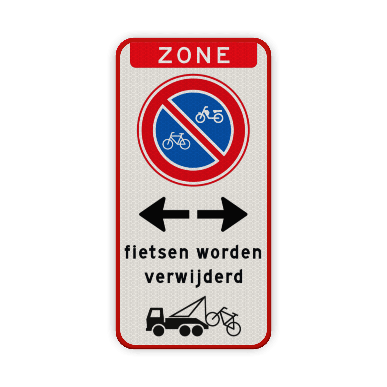 Verkeersbord zone geen bromfietsen plaatsen, worden verwijderd - reflecterend