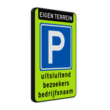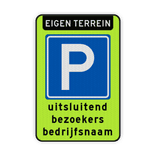 Parkeerbord bezoekers bedrijf eigen terrein extra opvallende uitvoering  nodig? Geef met dit bord aan dat het een eigen terrein is en waar parkeren is toegestaan voor bezoekers.
